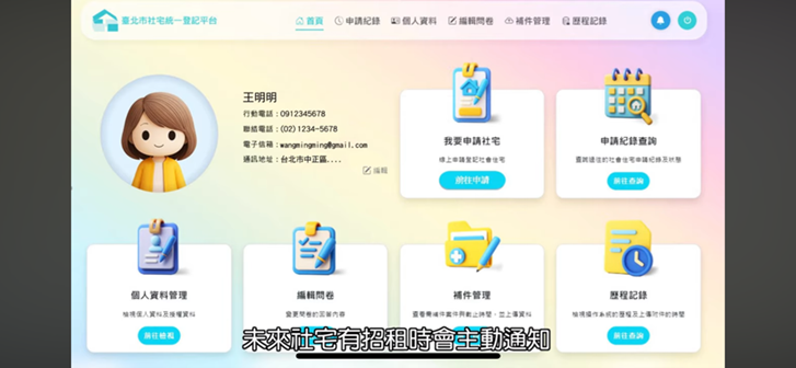 台北市於2026年1月正式啟用社宅統一登記平台,提供「一次登記、長期有效、主動通知」之服務,並串接戶政與稅務資料,大幅簡化申請流程,為後續推行輪候制奠定基礎。