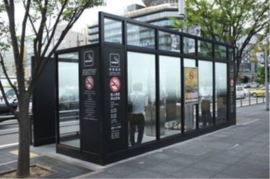 (三)於示範區內盤點非人流必經之閒置空間,參考澳洲雪梨設置「專用熄菸桶」或東京「吸菸亭」、新加坡黃色網格模式,引導吸菸者至定點吸菸,並觀察分流成效作為未來修法之參考依據。