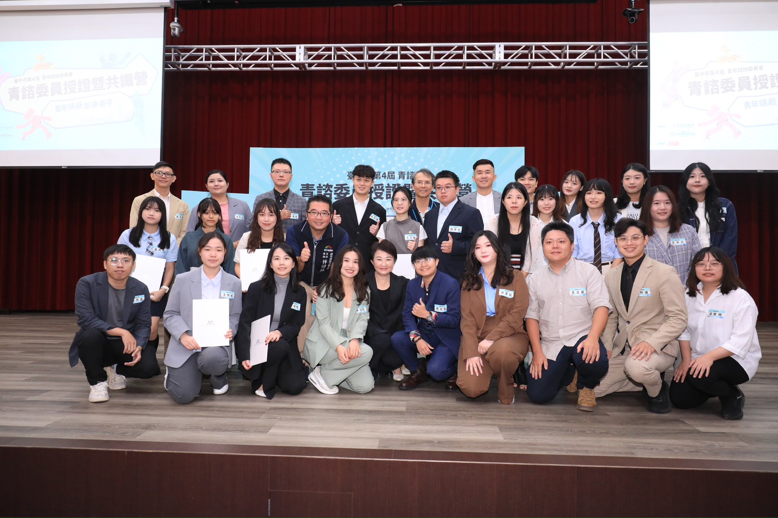 青年領航,築夢台中!台中市政府研考會今(20)日於國立中興大學舉辦「第四屆青年事務諮詢委員會」授證典禮暨共識營,百位來自各領域及多元族群的青年齊聚一堂,由台中市長盧秀燕親自頒發委員證書,期勉青年以創意思維與行動力,成為市政推動的重要夥伴,為施政帶來更全面視野。
