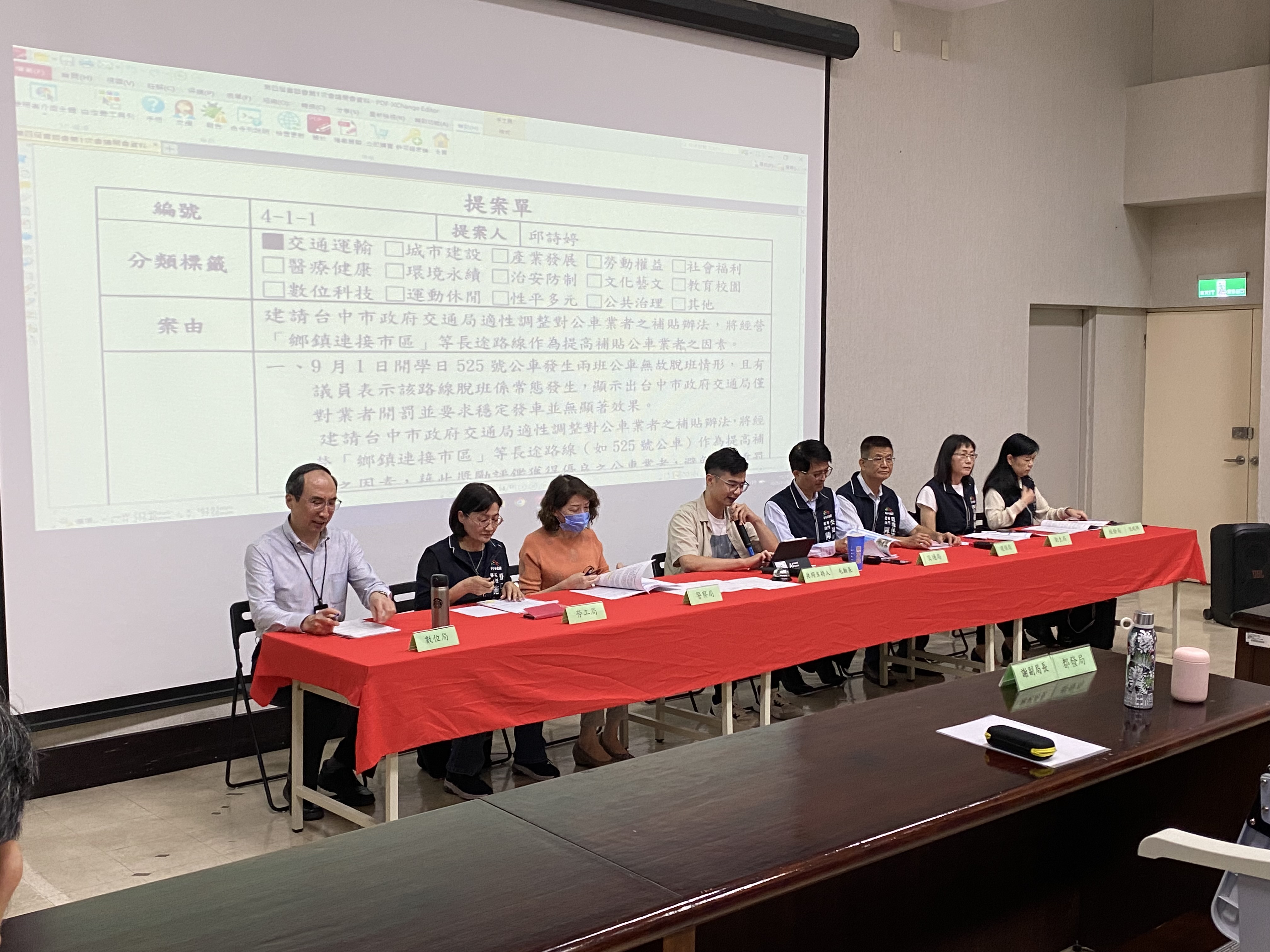 案由一:建請台中市政府交通局適性調整對公車業者之補貼辦法,將經營「鄉鎮連接市區」等長途路線作為提高補貼公車業者之因素。(提案人:邱委員詩婷)